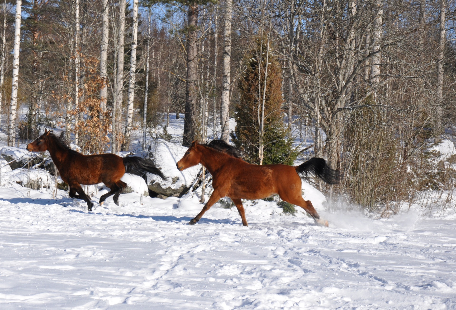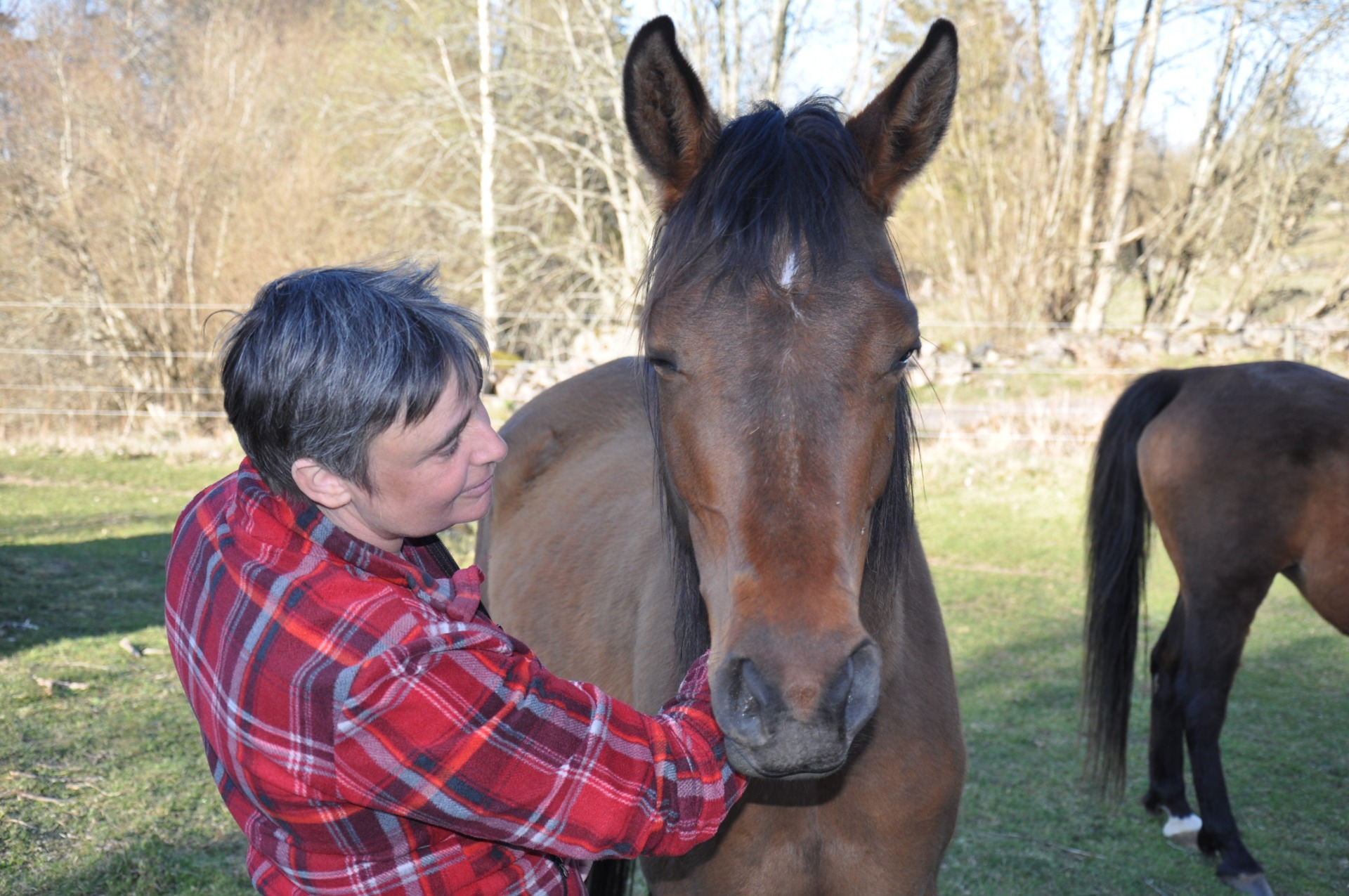 Vi skötte och red deras hästar ute i skogen under flera år. De hade en hästhantering som byggde på ömsesidig respekt mellan häst och människa, precis så som vi ville ha det. Plötsligt var min hästrädsla som bortblåst igen! Vi hade förmånen att få hantera både hingstar, ston, föl och unghästar. Vi sög i oss massor av kunskap från både ägare och hästar och tillbringade många, många timmar med att bara sitta i hagarna och studera samspelet den stora stoflocken eller unghingstarnas "brottningsmatcher".